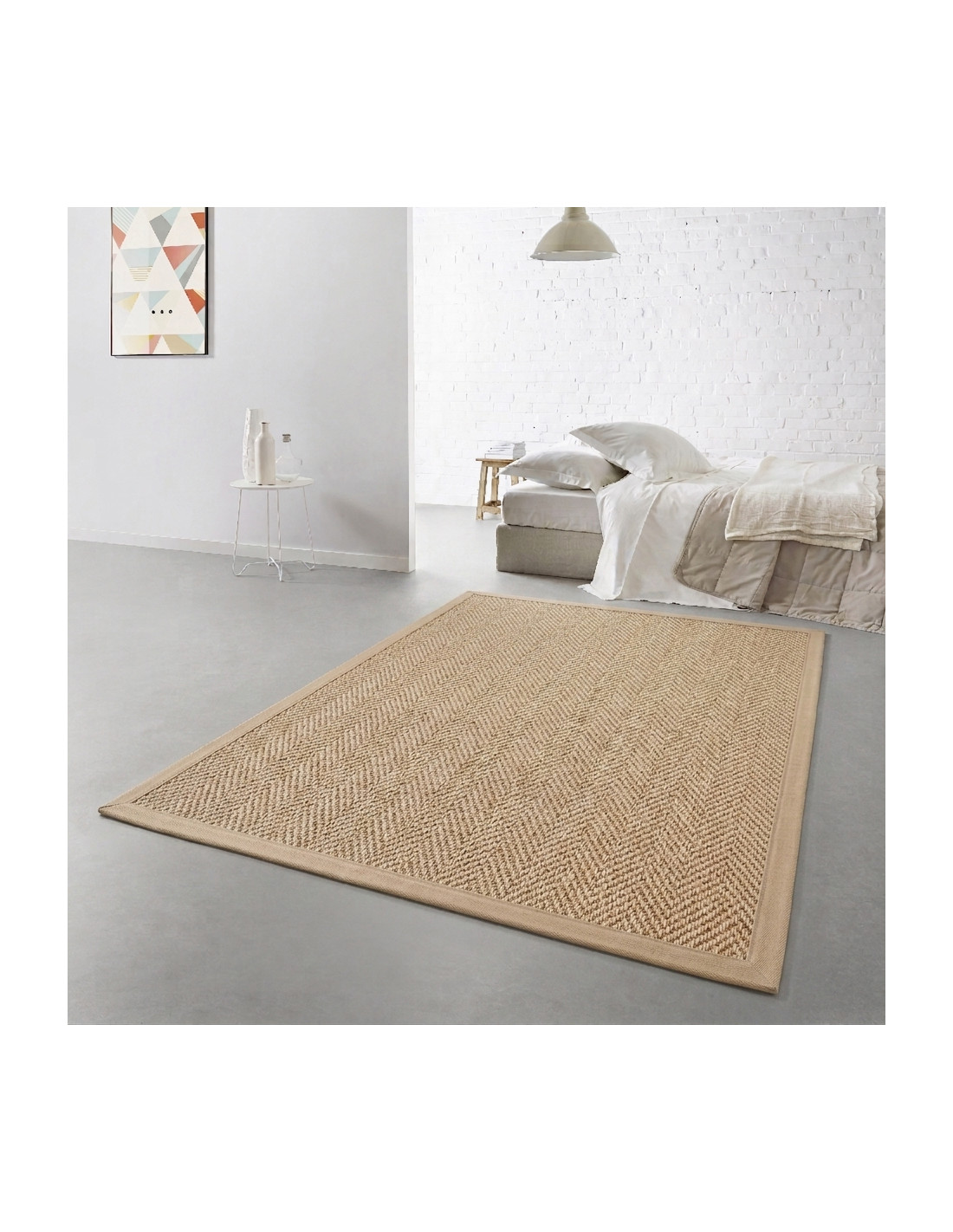 Le tapis Argan se distingue par son tissage à plat en chevron, un motif intemporel et tendance qui apporte authenticité et caractère à votre intérieur. Fabriqué en 100% polypropylène avec un dossier en feutre, il allie robustesse et confort de marche au quotidien. Disponible dans un coloris naturel chaud et chaleureux, il s'adapte aussi bien aux espaces intérieurs qu'aux terrasses couvertes. Entièrement fabriqué sur mesure avec une finition gansée ou galonnée, en carré, rectangle ou rond. Certifié Oeko-Tex Standard 100 et A+ émissions air intérieur.