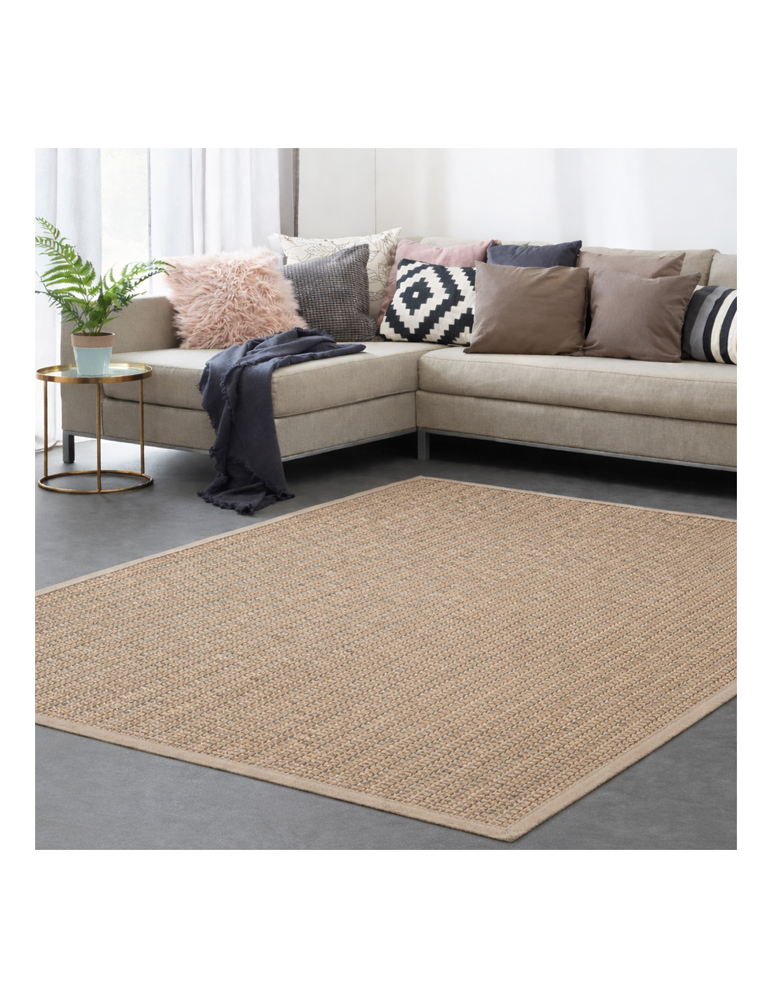 Le tapis Botanic Structuré met en valeur un tissage fin et rythmé, inspiré des fibres naturelles. Son motif régulier, composé de lignes horizontales délicatement texturées, apporte une lecture sobre et élégante du sol tout en créant un subtil effet de relief. Sa conception en tissage à plat 100 % polypropylène reproduit avec fidélité l’aspect du sisal et du jonc de mer, tout en offrant une résistance accrue et une grande facilité d’entretien. Son rendu naturel, ponctué de nuances chaudes et légèrement contrastées, s’intègre harmonieusement dans tous les styles d’intérieur, du plus contemporain au plus authentique. Grâce à son profil fin et à sa structure régulière, le tapis Botanic Structuré est idéal pour structurer un espace sans l’alourdir visuellement. Son dossier en feutre assure une bonne tenue au sol ainsi qu’un confort appréciable au quotidien. Adapté à un usage intérieur comme extérieur couvert, il est certifié Oeko-Tex Standard 100 et classé A+ pour les émissions dans l’air intérieur, garantissant qualité et sécurité. Confectionné en France, il est proposé avec une finition gansée ou galonnée, en format carré, rectangle ou rond, pour s’adapter parfaitement à votre projet — de 0,6 x 1,4 m jusqu’à 4 x 6 m.